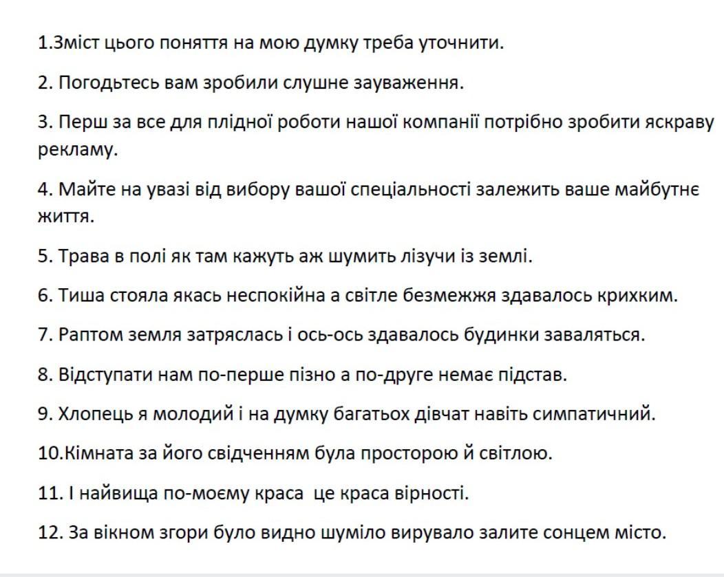 надо поставить знаки препинания, и над словами поставить ВС (Я сам не знаю что такое вс)