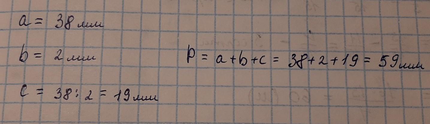 Одна сторона трикутника 38мм, друга - 2мм, а третя - у 2 рази менша від першої.