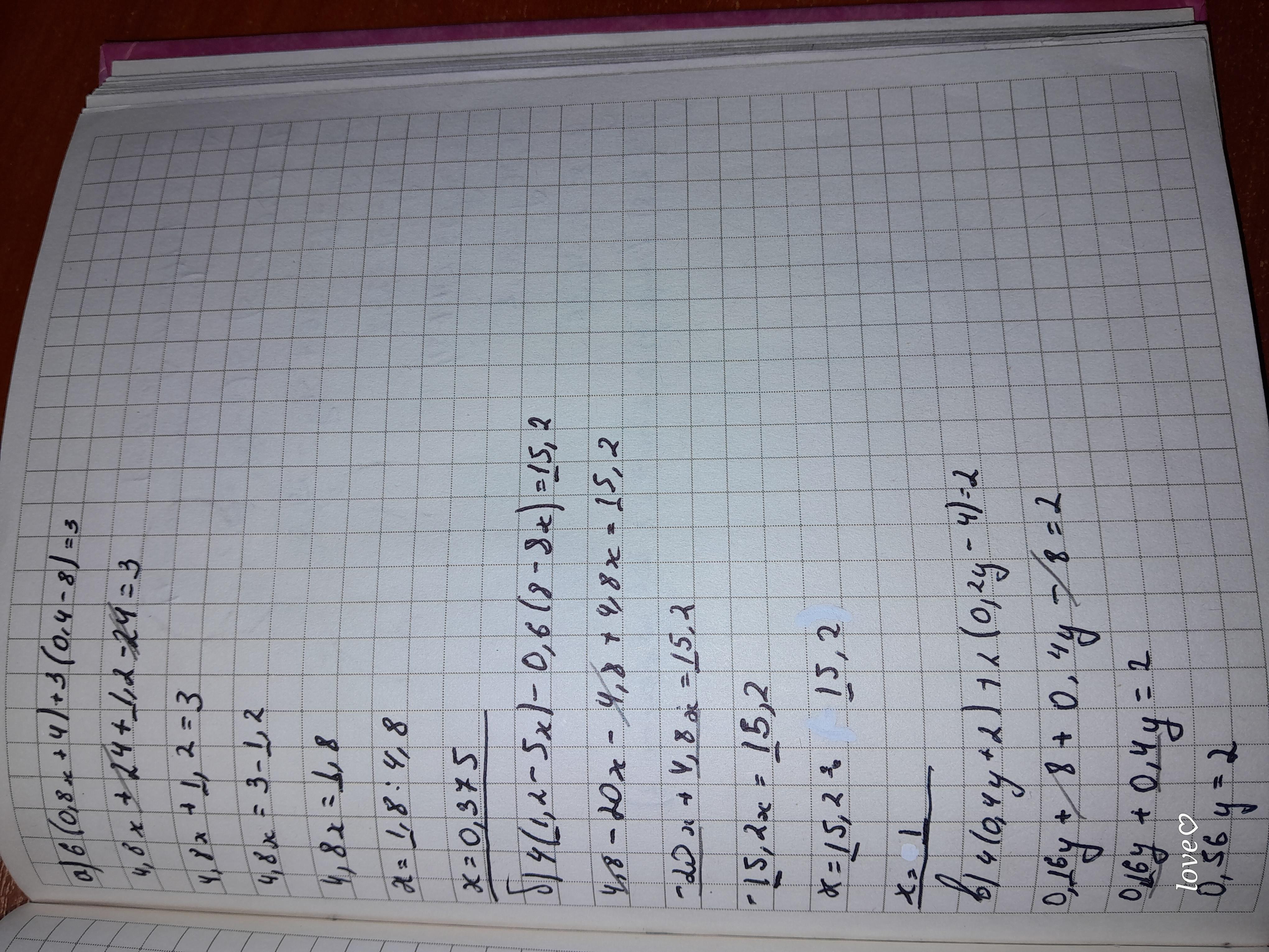 б)4(1,2-5x)-0,6(8-8x)=15,2