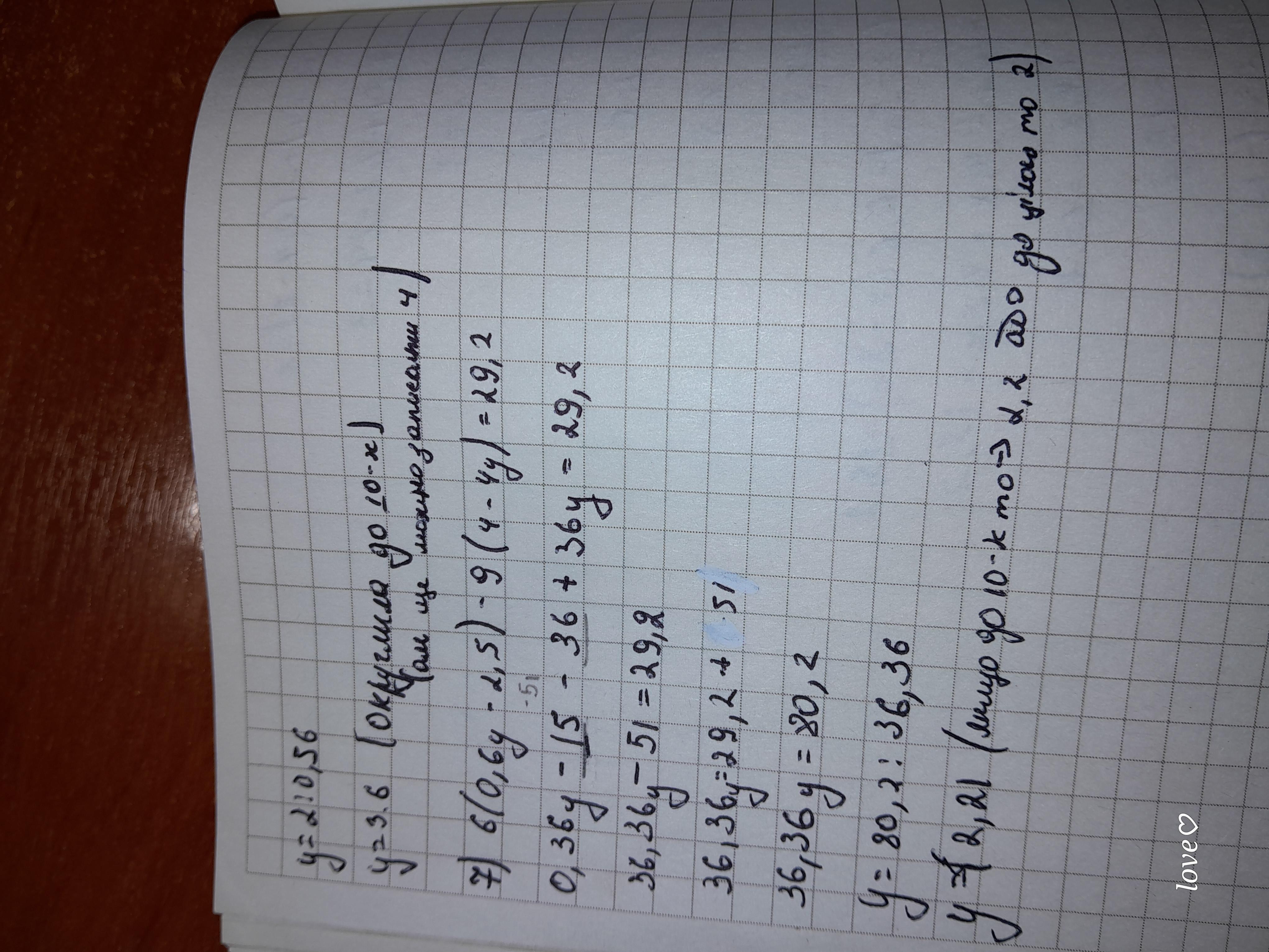 7)6(0,6у-2,5)-9(4-4у)=29,2