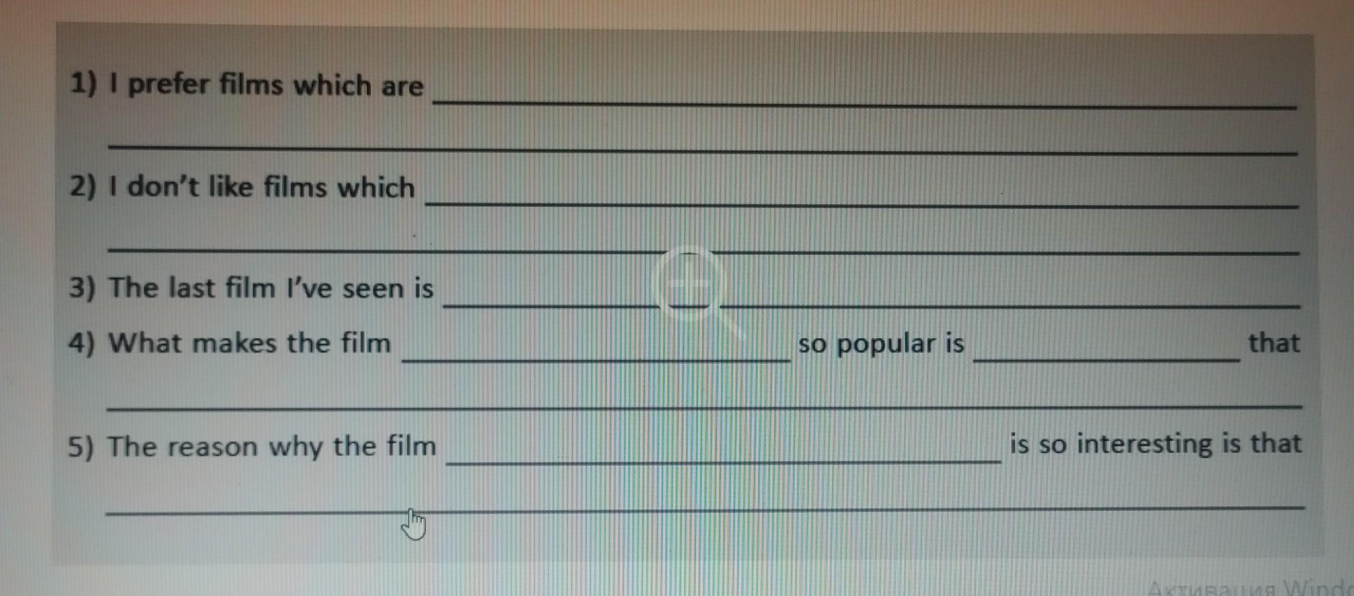 5)The reason why the film(название фильма)is so interesting is that(добавьте какие то свои причины)