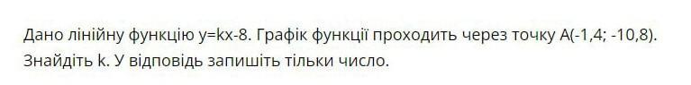 Замінимо координати точки A в рівнянні лінійної функції y=kx-8 і отримаємо: