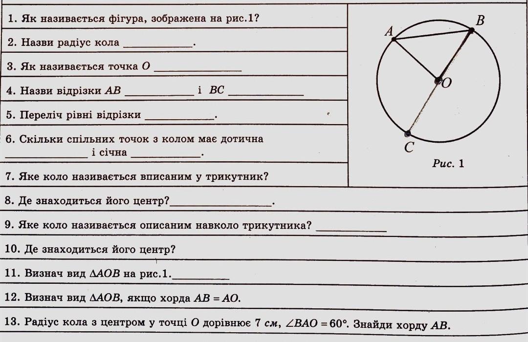 13. AO=7см кут ОВА=30градусів (90-60=30) АВ=14 см (катет навпроти кута 30 градусів дорівнює половині гіпотенузи тому 7*2=14)