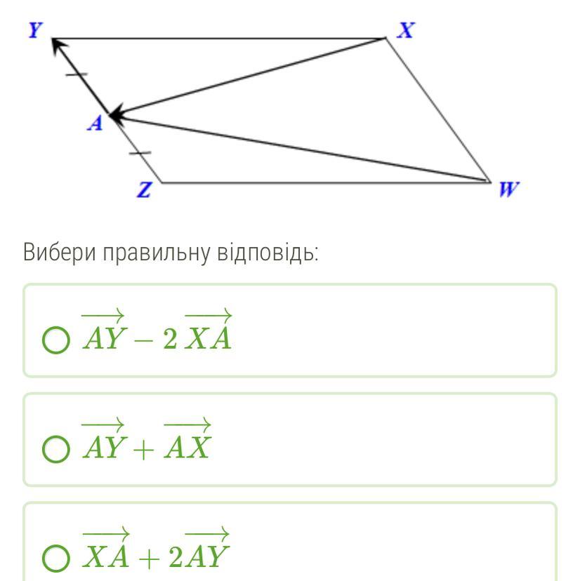 Також, оскільки WXYZ - паралелограм, то вектор XA -→ - = WY -→ .