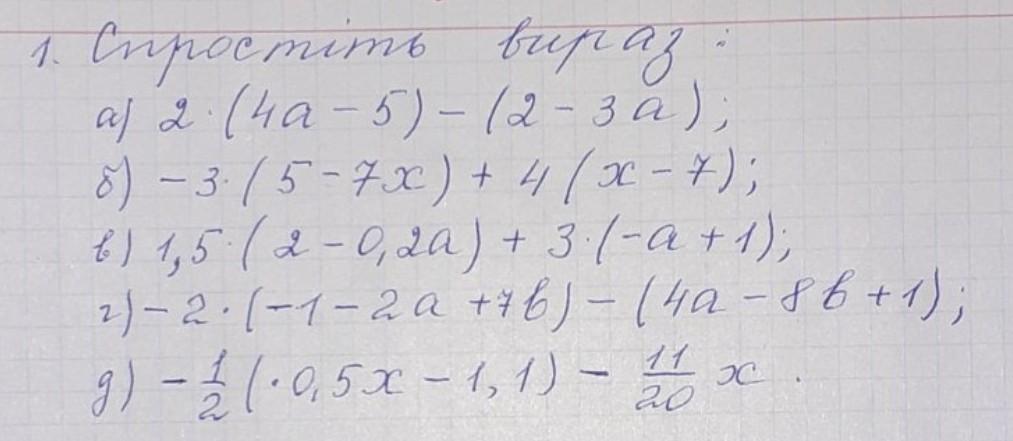 в) 1.5 (2-0.2a) + 3(-a*1) = 3 - 0.3a - 3a = -3.3a + 3