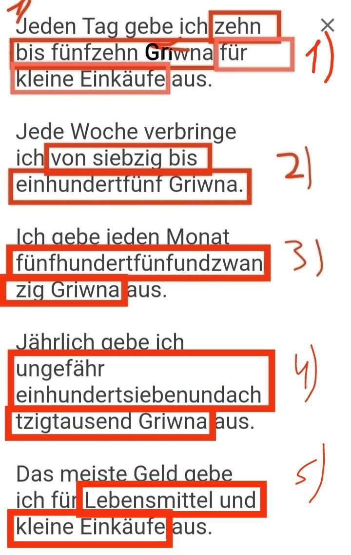 Я завдання ночю робила тому переплутала, у четвертому потрібно написати це: ungefähr dreitausendsechshundertfünfzig Griwna.