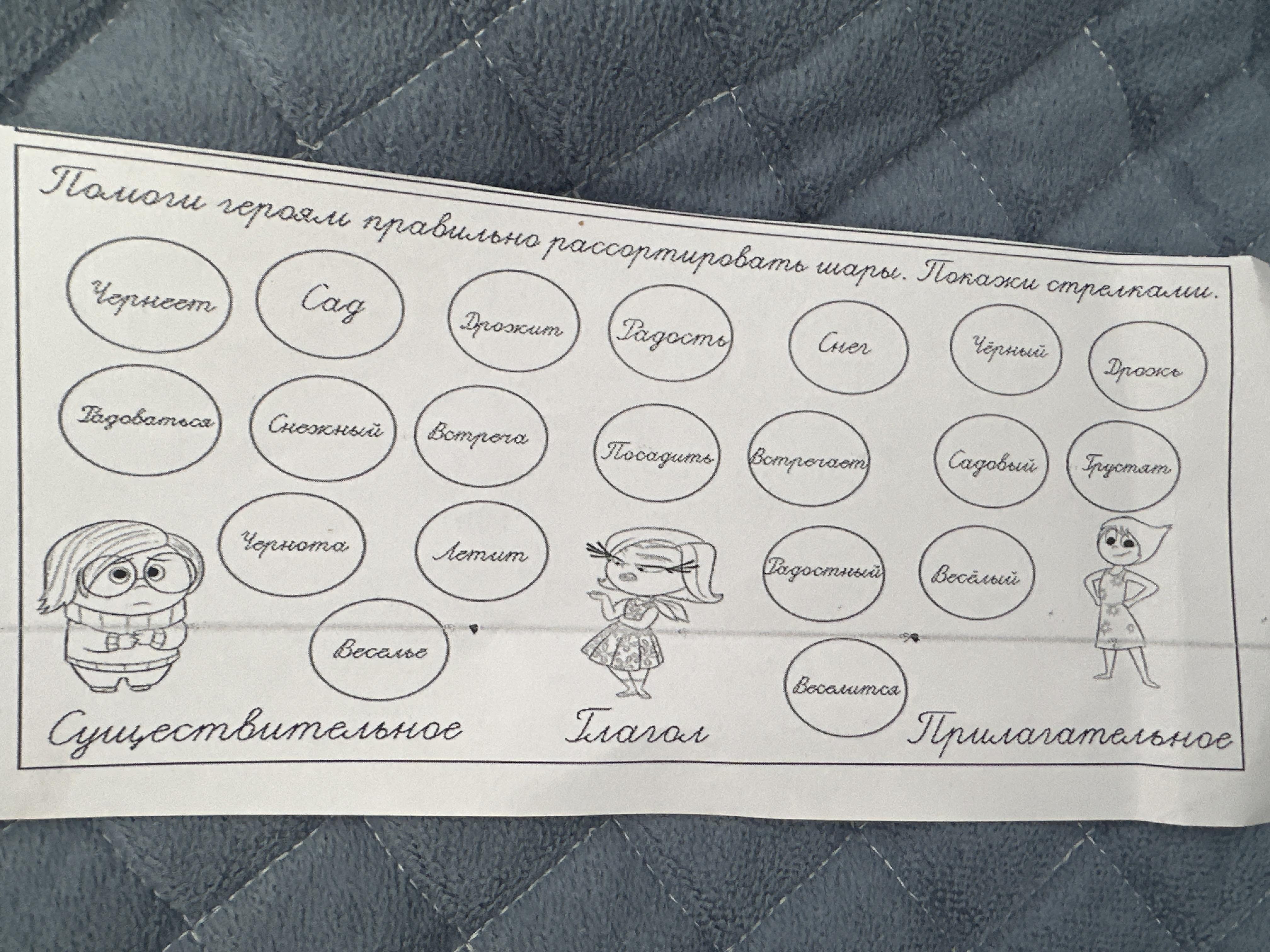 Существительное: сад, радость, снег, дрожь, встреча, чернота, веселье.