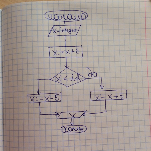 • если полученное число меньше 22, то прибавь 5, иначе отнять 5.