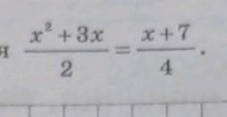 \frac{ {x}^{2}  + 3x}{ 2}  =  \frac{x + 7}{4}   \:  \:  \:  \:  | \times 4 \\ 2( {x}^{2}  + 3x) = x + 7 \\ 2 {x}^{2}  + 6x = x + 7 \\ 2 {x}^{2}  + 5x - 7 = 0 \\ d = 5 {}^{2}  - 4 \times 2 \times ( - 7) = 25 + 56 = 81 \\  x_{1} =  \frac{ - 5 + 9}{2 \times 2}  =  \frac{4}{4}  = 1 \\  x_{2} =  \frac{ - 5 - 9}{2 \times 2}  =  -  \frac{14}{4}  = -  \frac{7}{2}  =   -3.5