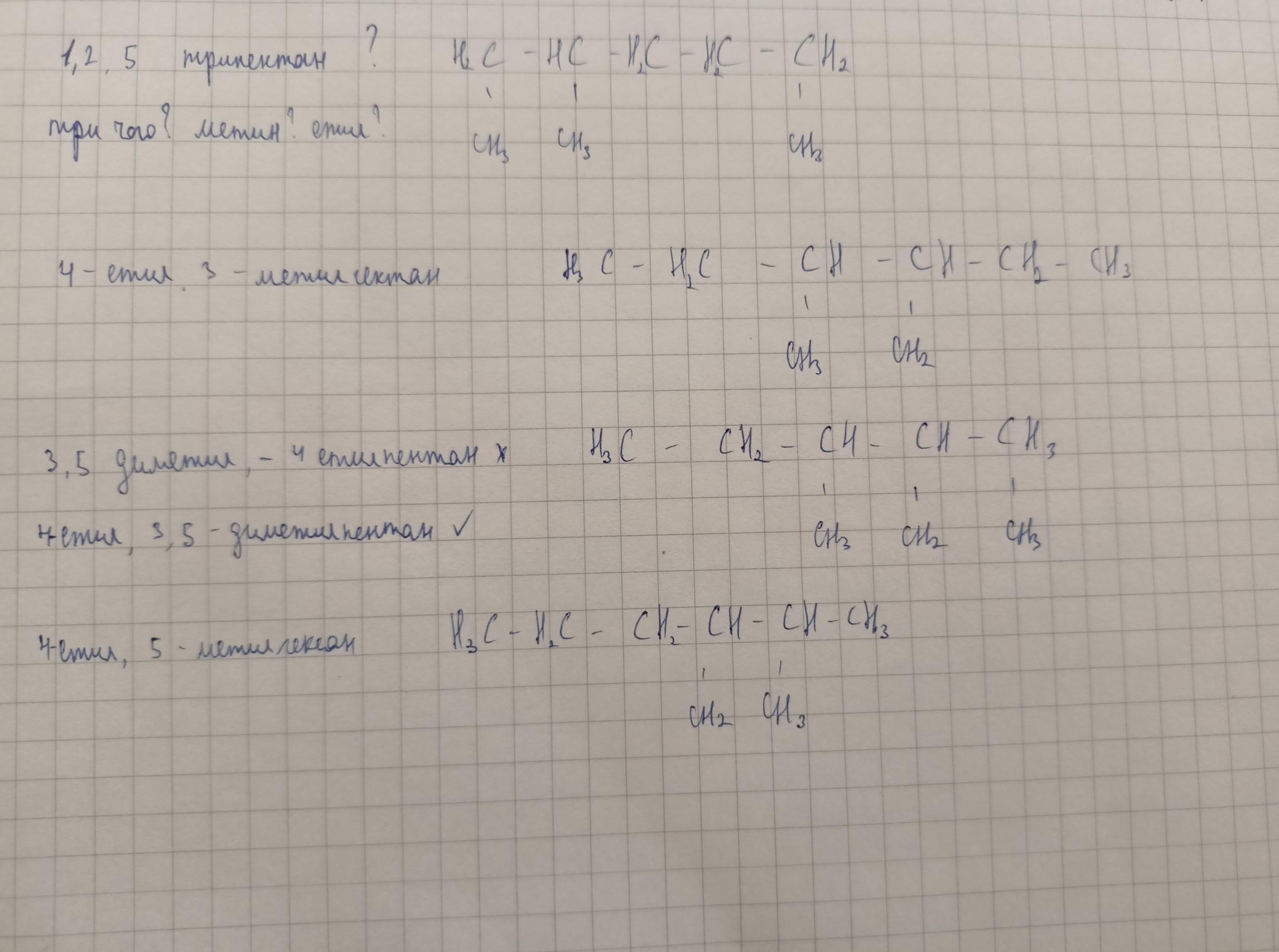 Скласти формули речовин з їх назви 1 2 5 трипентан ,4 етил 3 метилгектан ,3 5 диметил 4 етилпентан ,4 етил 5 метилгексан