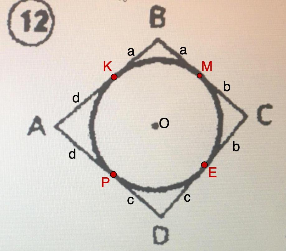 Если в четырехугольник вписана окружность, то суммы противоположных сторон равны.
