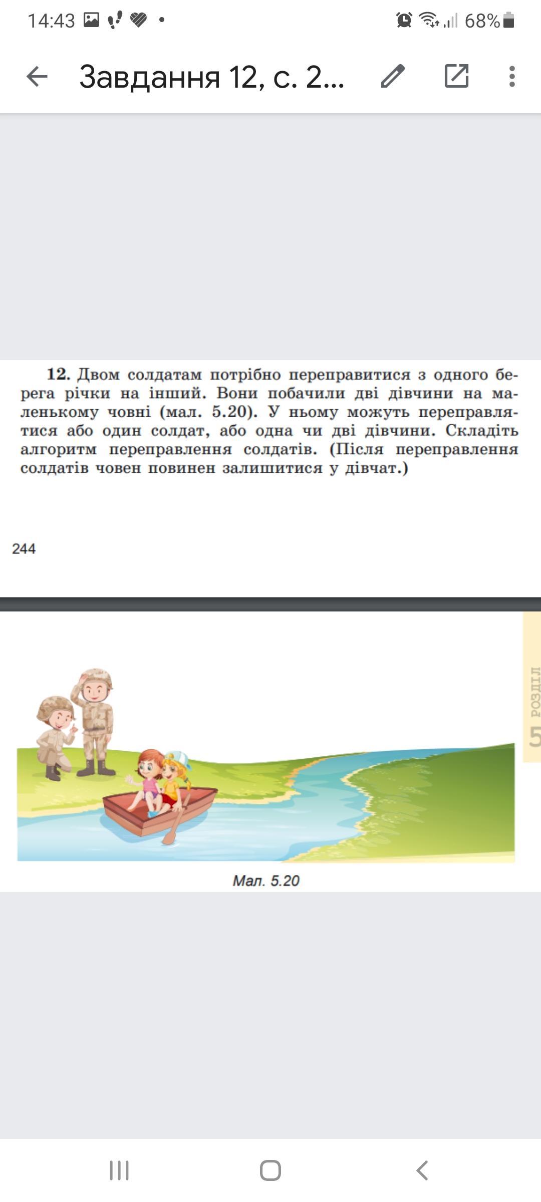 2. Друга дівчинка візьме на борт одного солдата і сама висяде на іншому березі
