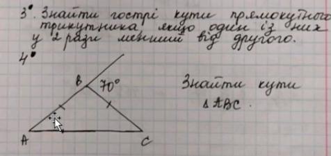Добрый день,помогите 2 задания нужно сделать 1.Знайти гострі кути прямокутного трикутника якщо один з них у 2 рази менший від другого.2.Знайти кути АВС