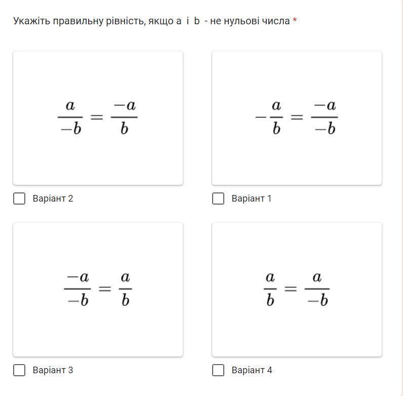 Дріб із від'ємним числівником та від'ємним значенням завжди є додатним -а/b = a/b