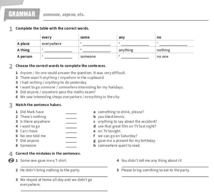 ДАЮ 30 БАЛЛОВ СРОЧНО!GRAMMAR someone, anyone, etc.