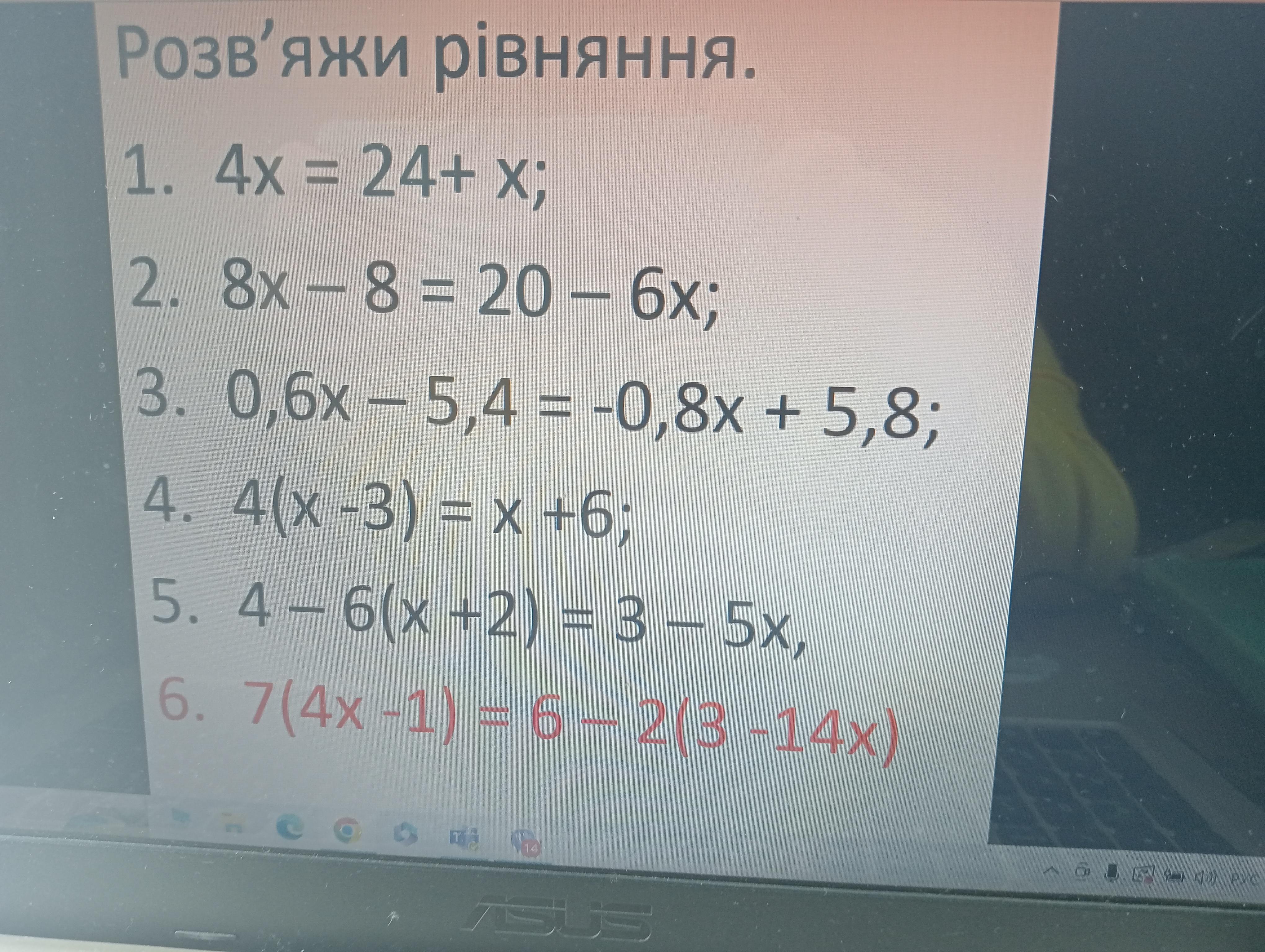 7(4x-1)=6-2(3-14x); 28x-7=6-6+28x; 28x-28x=-7; це буде пуста множина