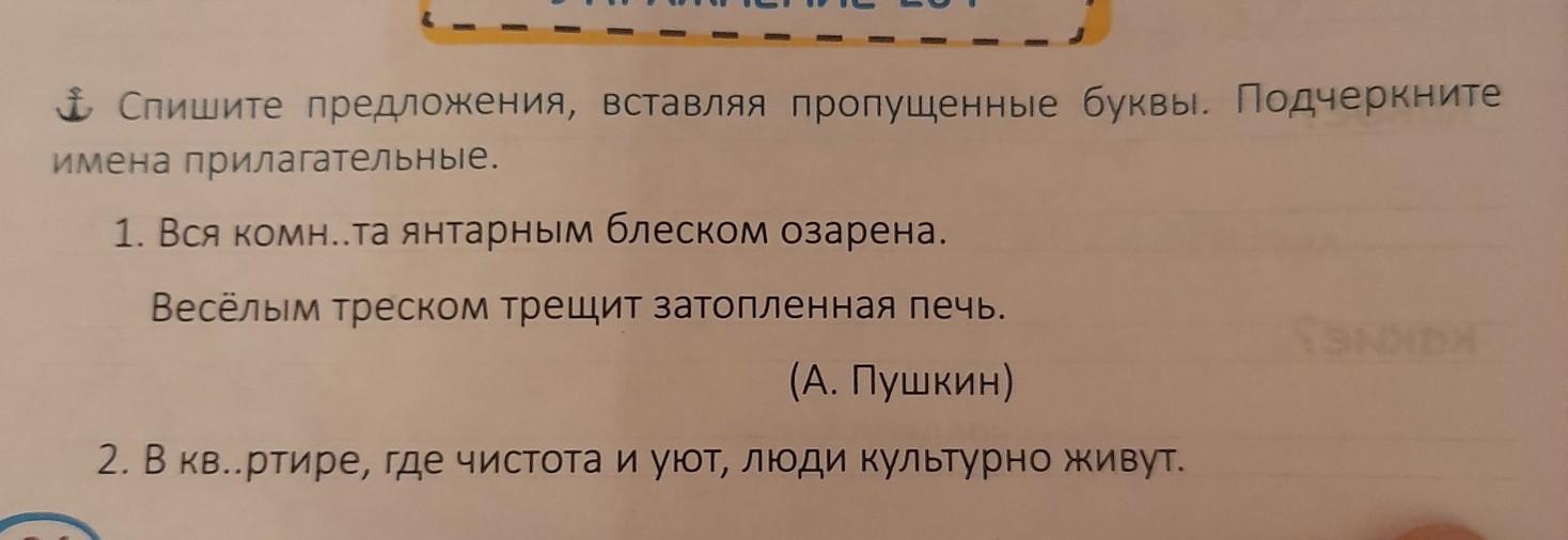 Спишите предложения, вставляя пропущенные буквы. Подчеркните имена прилагательные.