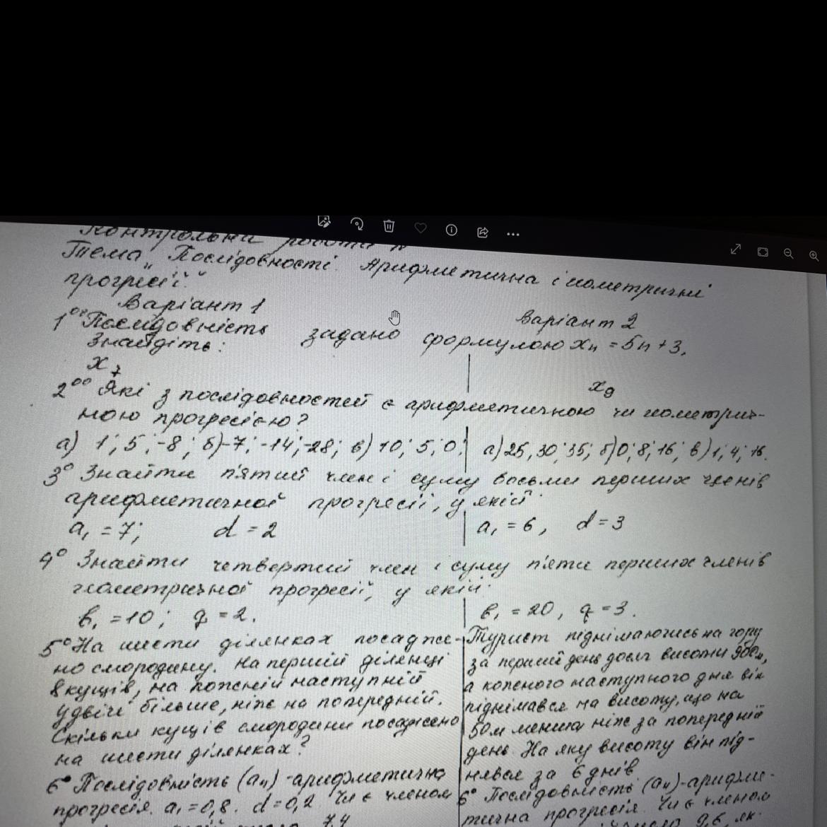 Знайти четвертий член і суму п'яти перших членів геометричної прогресії у якій в =10 ; q=2