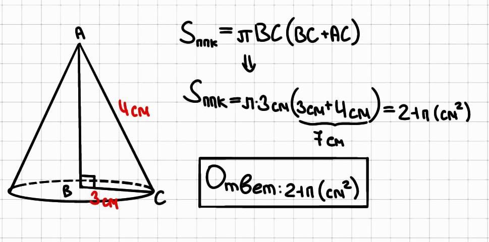 АС – образующая (4 см), ВС – радиус основания (3 см).