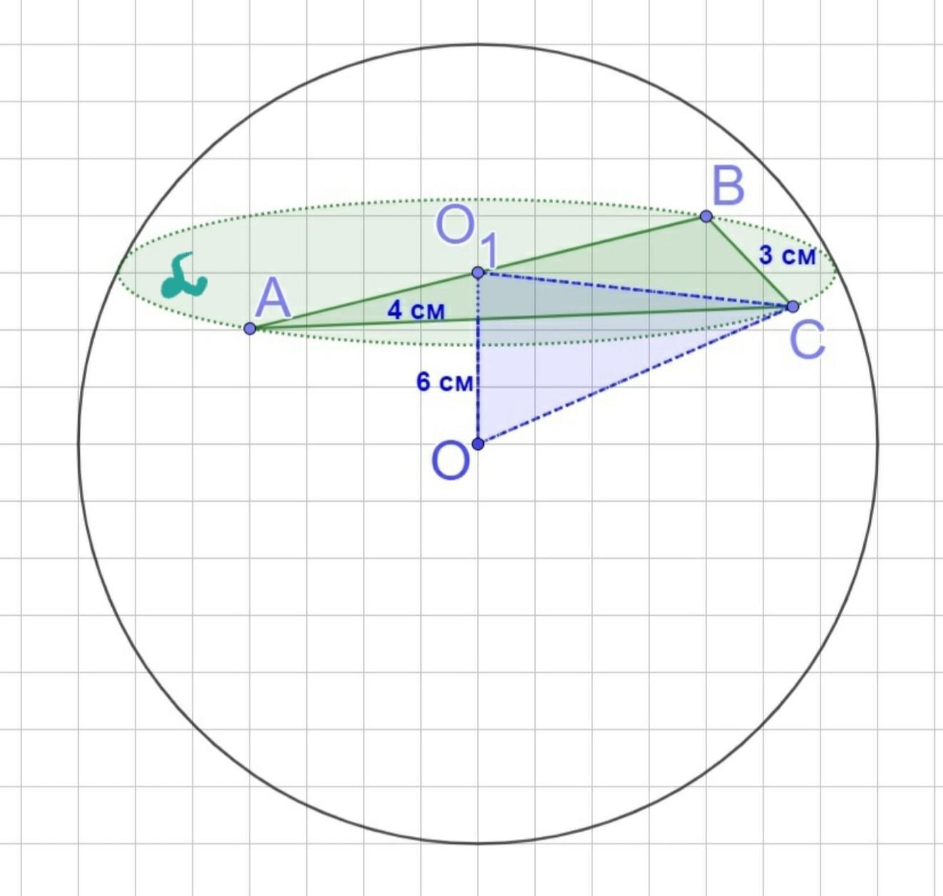 З △OO₁C(∠O₁=90°) за теоремою Піфагора знайдемо гіпотенузу ОС (радіус кулі)