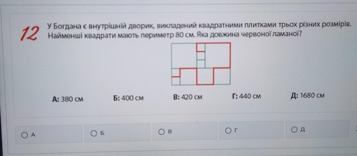 сторона малого квадрата =20 см, таких отрезков по красной линии 21