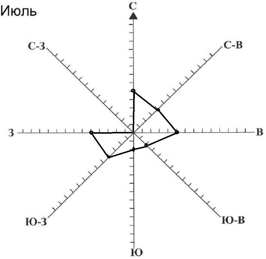 Потім всі ці точки з'єднуємо і отримуємо розу вітрів.