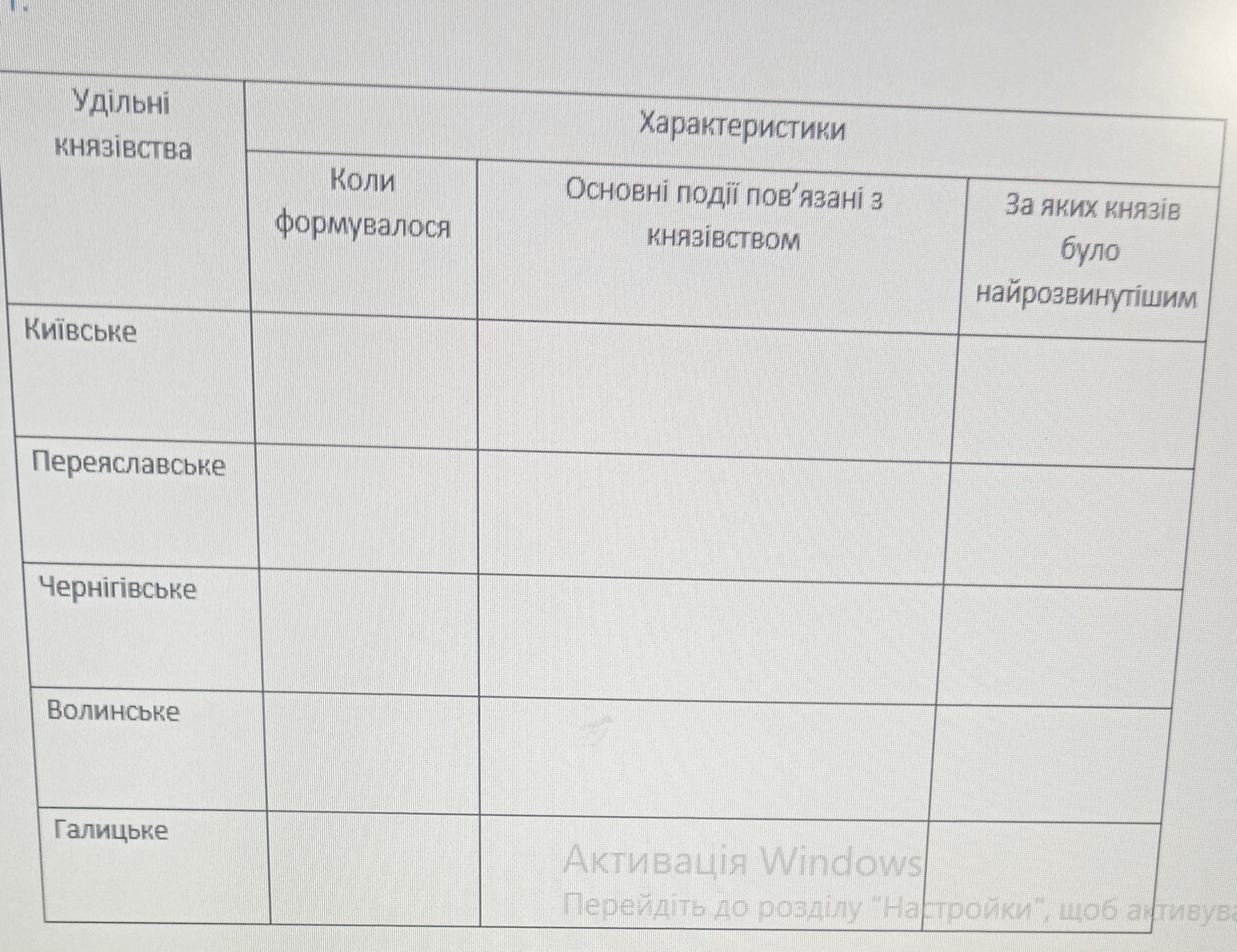 складіть таблицю з основними характеристиками удільних князівств Київської держави часів роздробленості: