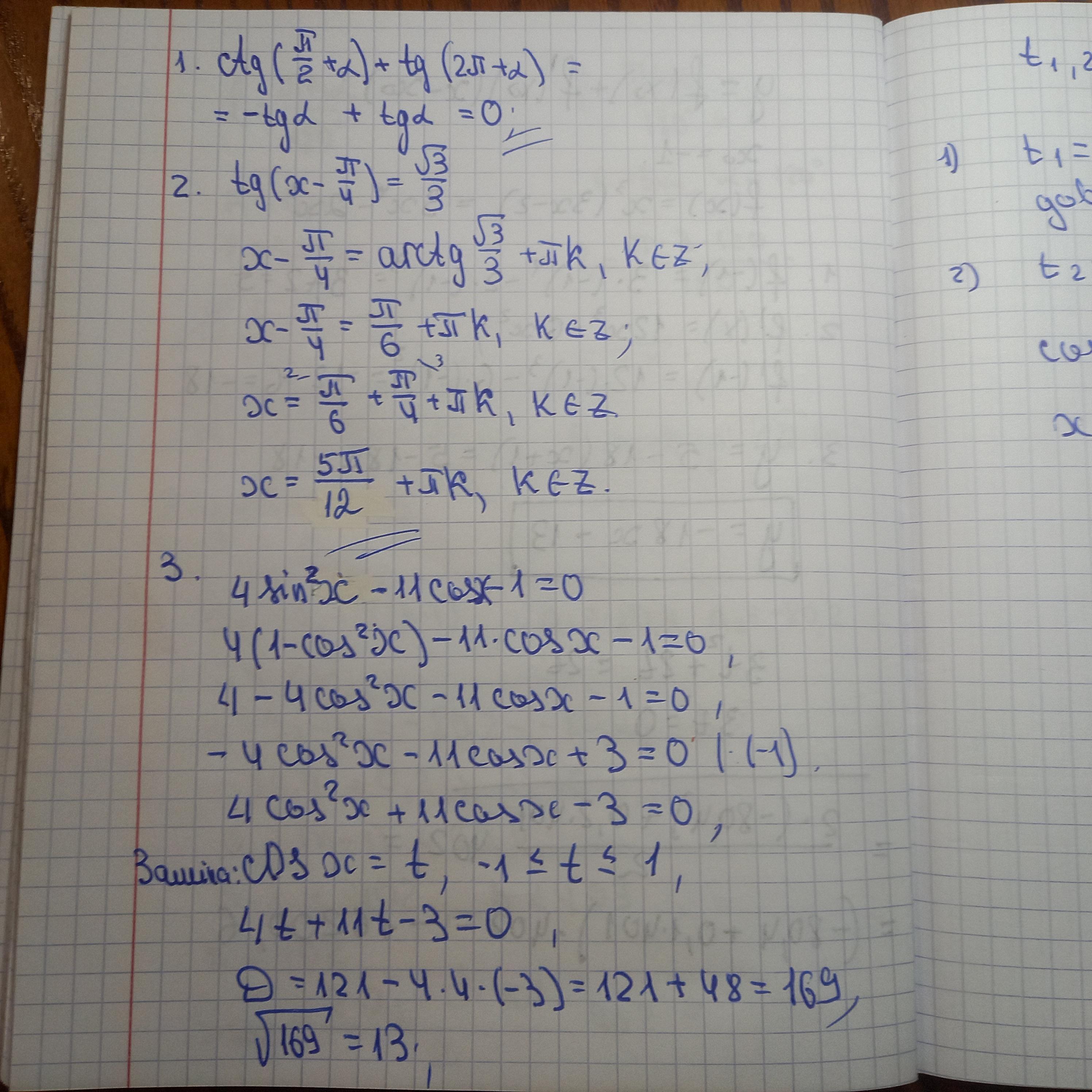 1. Спростіть вираз ctg ( П/2 + a) + tg ( 2П + a)