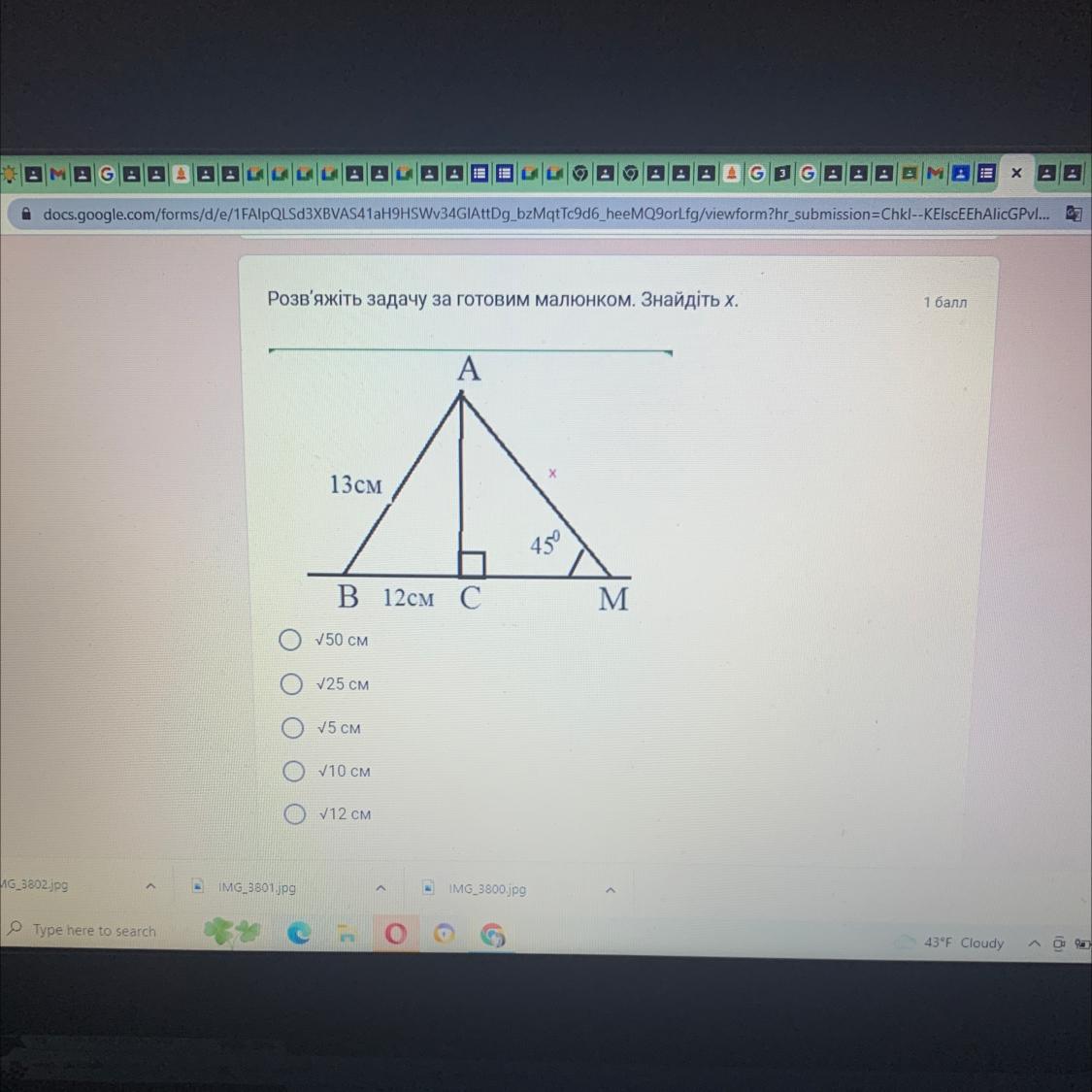 угол САМ = 180° - (угол ACM + угол AMC) = 45°