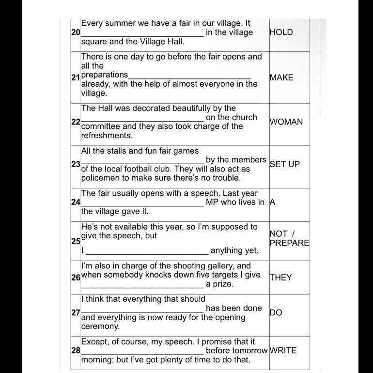 Каждое лето у нас в деревне проходит ярмарка. Она 20 ПРОВОДИТСЯ на деревенской площади и в сельской ратуше.