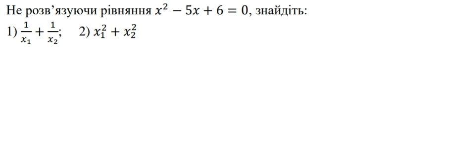 { x₁ * x₂ = 6 . 1 ) 1/x₁ + 1/x₂ = ( x₁ + x₂ )/( x₁ * x₂ ) = 5/6 ; 1/x₁ + 1/x₂ = 5/6 ;