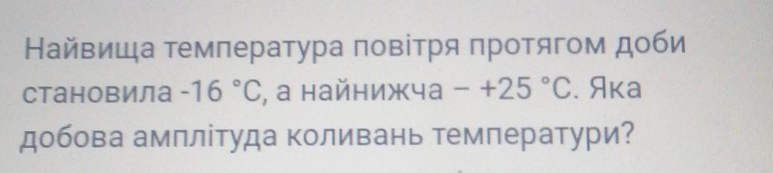 добова амплітуда = |-16| - |25| = 16 - 25 = -9 °C