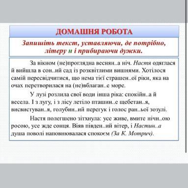 Ответ: Непроглядна; весняна; сонний; страшенної; невблаганне; спокійна; пташине; щебетання; висвистування; голубиний; ранньої; нічною; південний; Настина