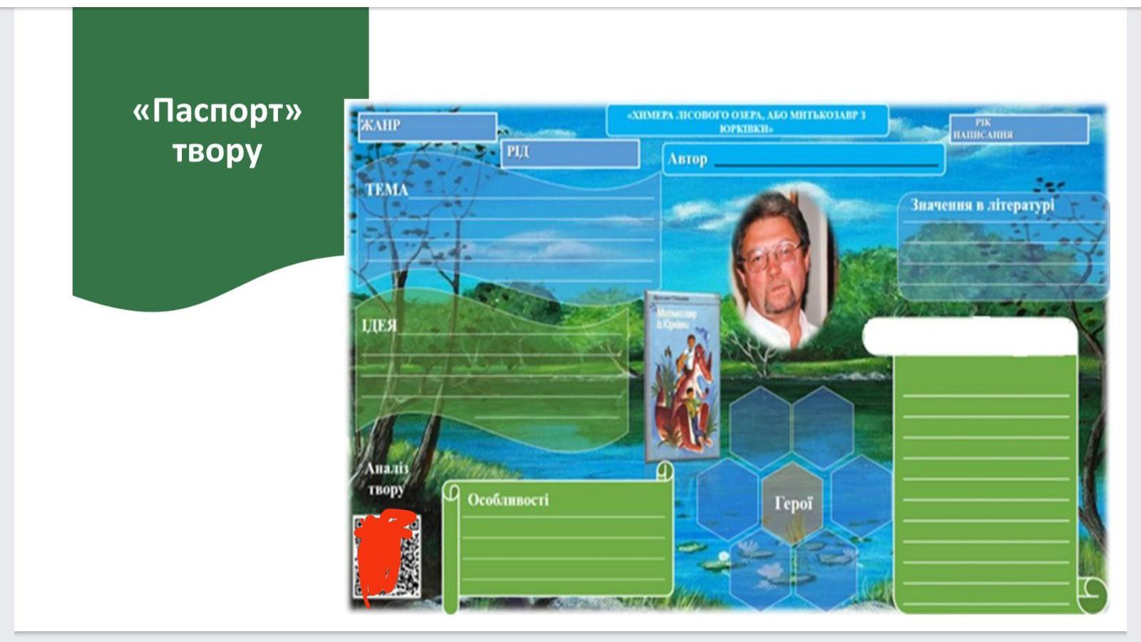 1. Заповнити паспорт» твору "Митькозавр з Юрківки, або Химера лісового озера"