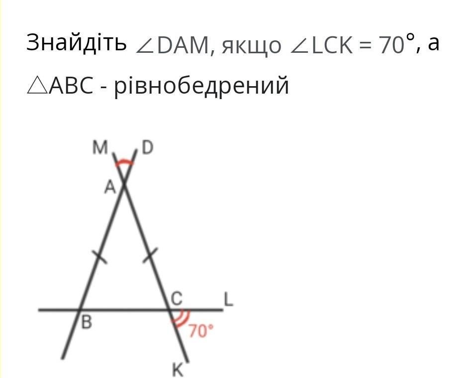 Кут BCA = 70 оскільки він буде вертикальний куту LCK