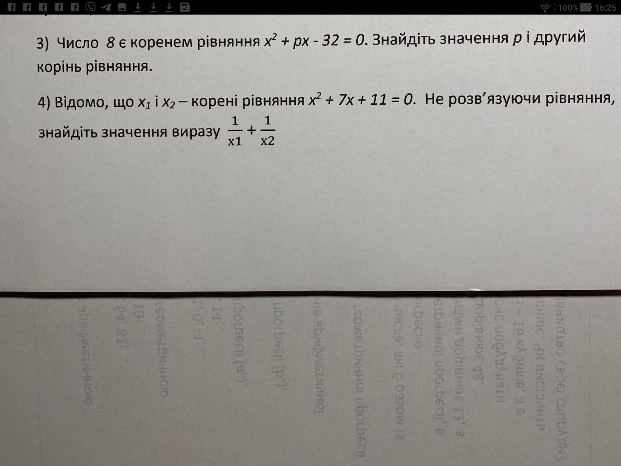 3) Дано: х²+рх-32=0; х₁=8