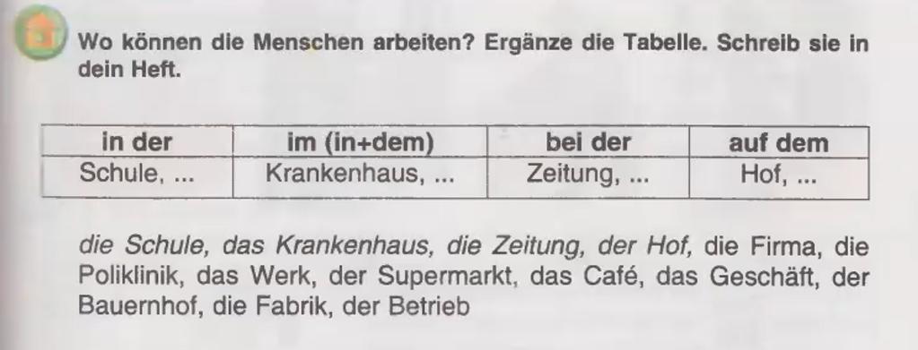 im (in+dem): Krankenhaus, Supermarkt, Cafe, Geschäft, Betrieb.