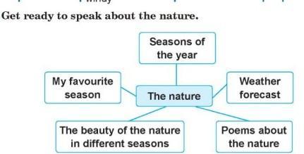 In summer it is very warm, there are many flowers, fruits, you can sunbathe and swim. In winter there is a lot of snow and you can skate and ski. In spring, nature wakes up, birds sing, snow melts, snowdrops appear. In autumn there are many red and yellow leaves on the trees, it often rains, the birds fly south.