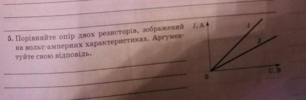 Опір першого резистору менший. ніж опір другого резистора, тому що при однакових рівням напруги на обох резисторах, більший рівень струму тече через перший резистор.