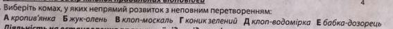 В клоп- москаль, Г коник зелений, і відповідь Е бабка - дозорець