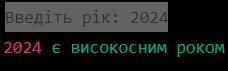 Ось програма, яка перевіряє, чи є введений користувачем рік високосним чи ні: