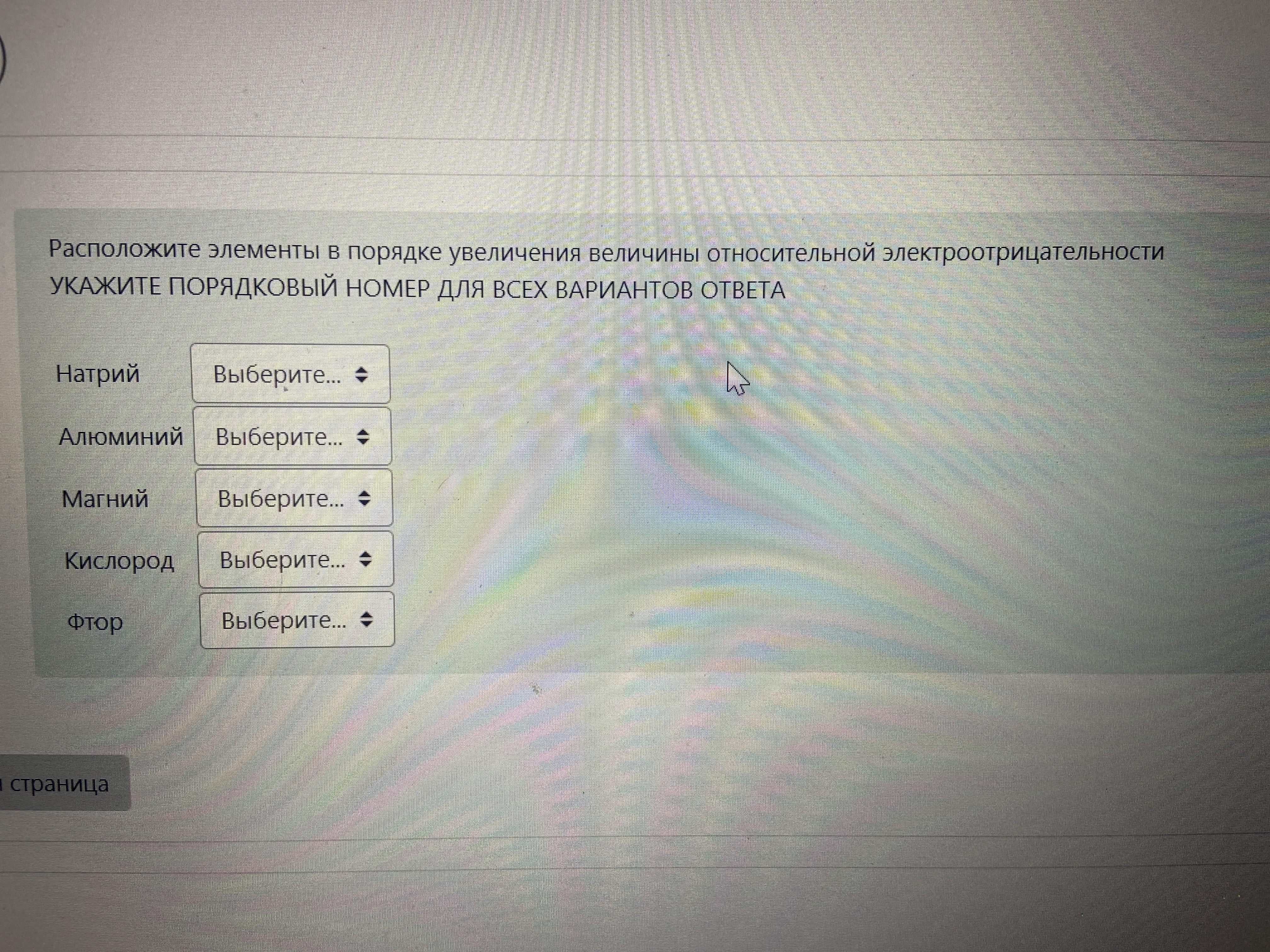 Натрий-0,93 Магний-1,31 Алюминий-1,61 Кислород-3,44 Фтор-3,98 надеюсь помогла=)