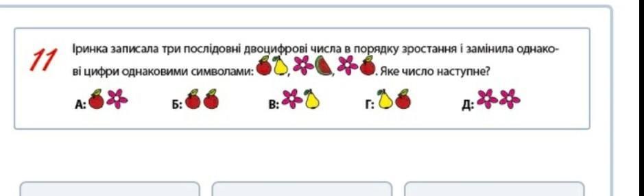 Перші два послідовні числа мають різні десятки, тому дгуга цифра в першому числі буде 9 (груша), а друга цифра в другому числі буде 0 (кавун). Тоді друга цифра в третьому числі 1 (яблуко). Звідси маємо, що перше число 19.