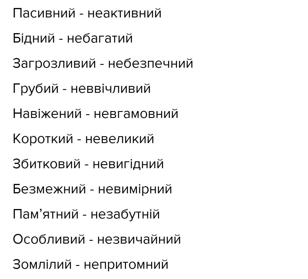 Пасивний, бідний, загрозливий, безпрецедентний, простий, грубий, навіжений, короткий, збитковий, безмежний, поблажливий, безнадійний, зрадливий, наполегливий, пам’ятний, особливий, зомлілий.