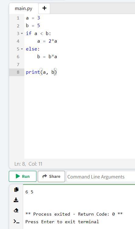 Яких значень набудуть змінні а і b після виконання умовних операторів, наведених нижче, для початкових значень a = 3; b = 5?