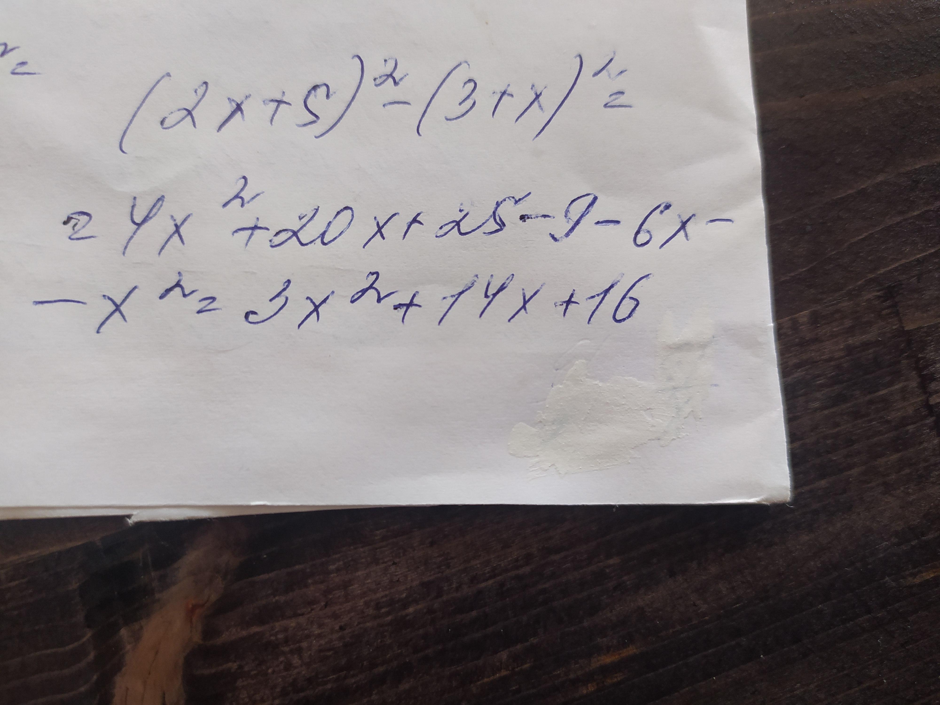 (2х+5)² - (3+х)² = (4х² + 20х + 25) - (х² + 6х + 9) = 3х² + 14х + 16