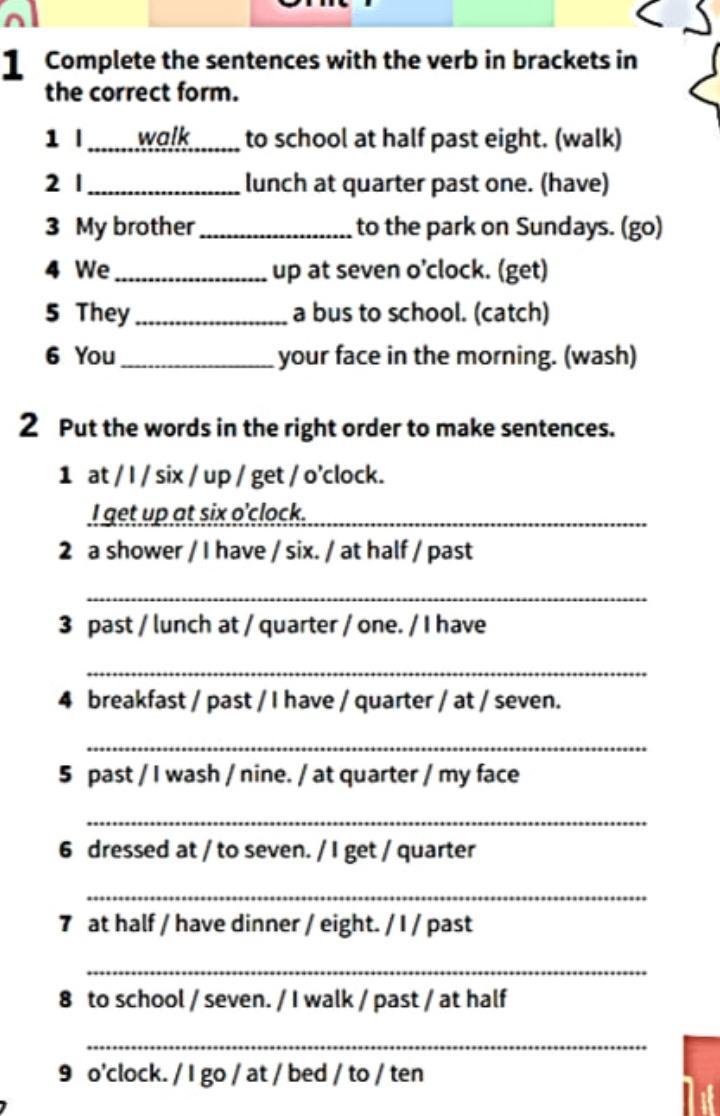 5. Iwash my face at quarter past nine.
