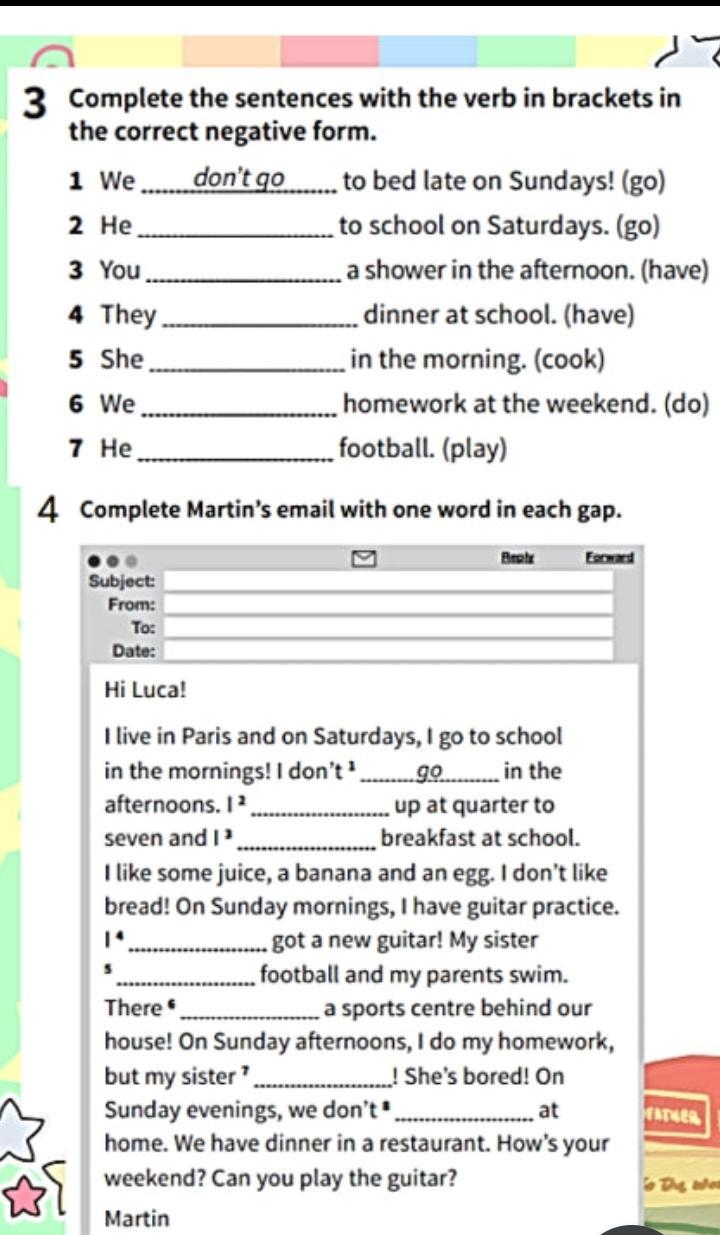 3. My brother go to the park on Sundays