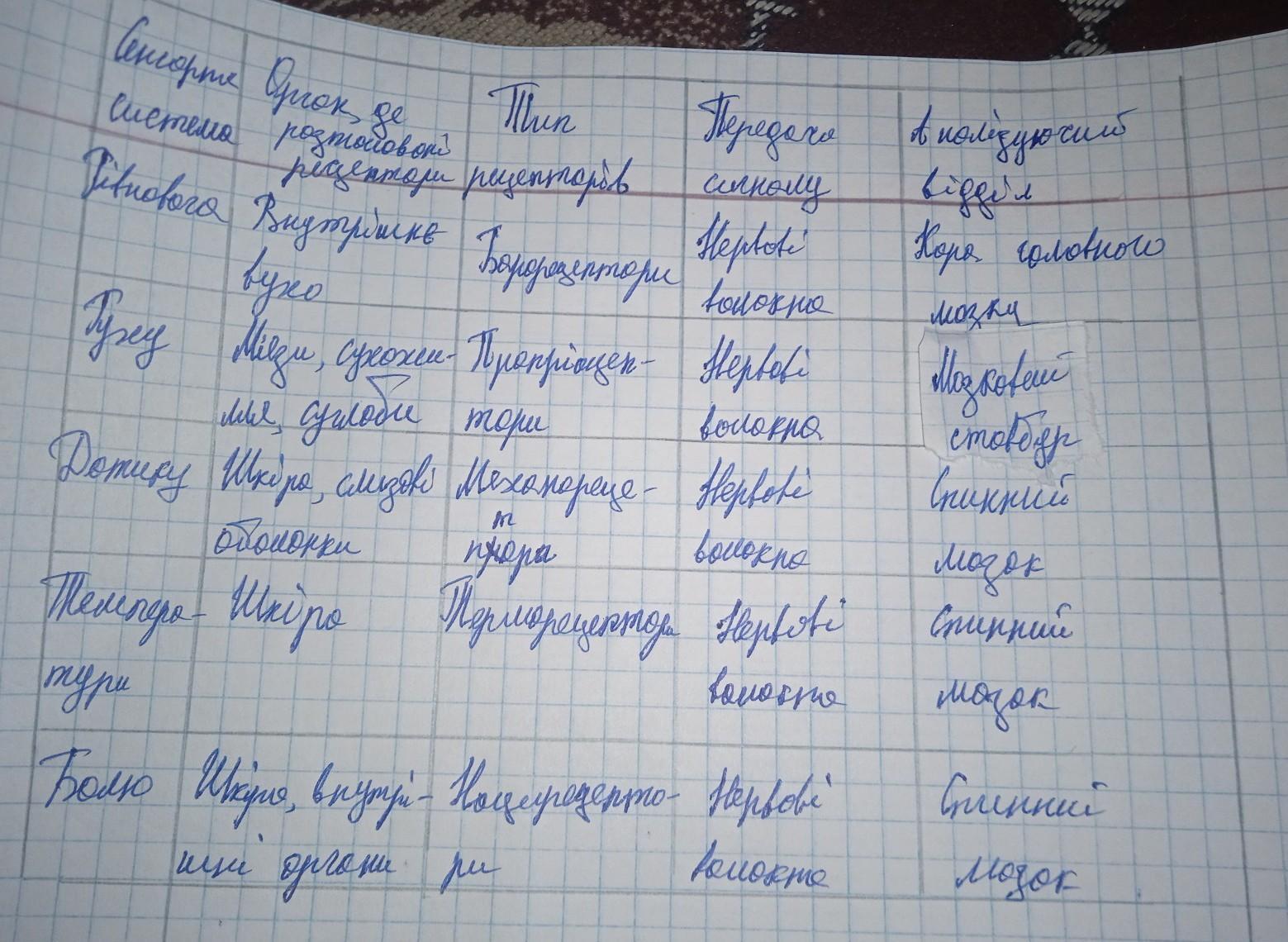 скласти таблицю сенсорна система рівноваги руху дотику температури болю розташування рецепторів провідникові шляхи аналізуючий відділ.