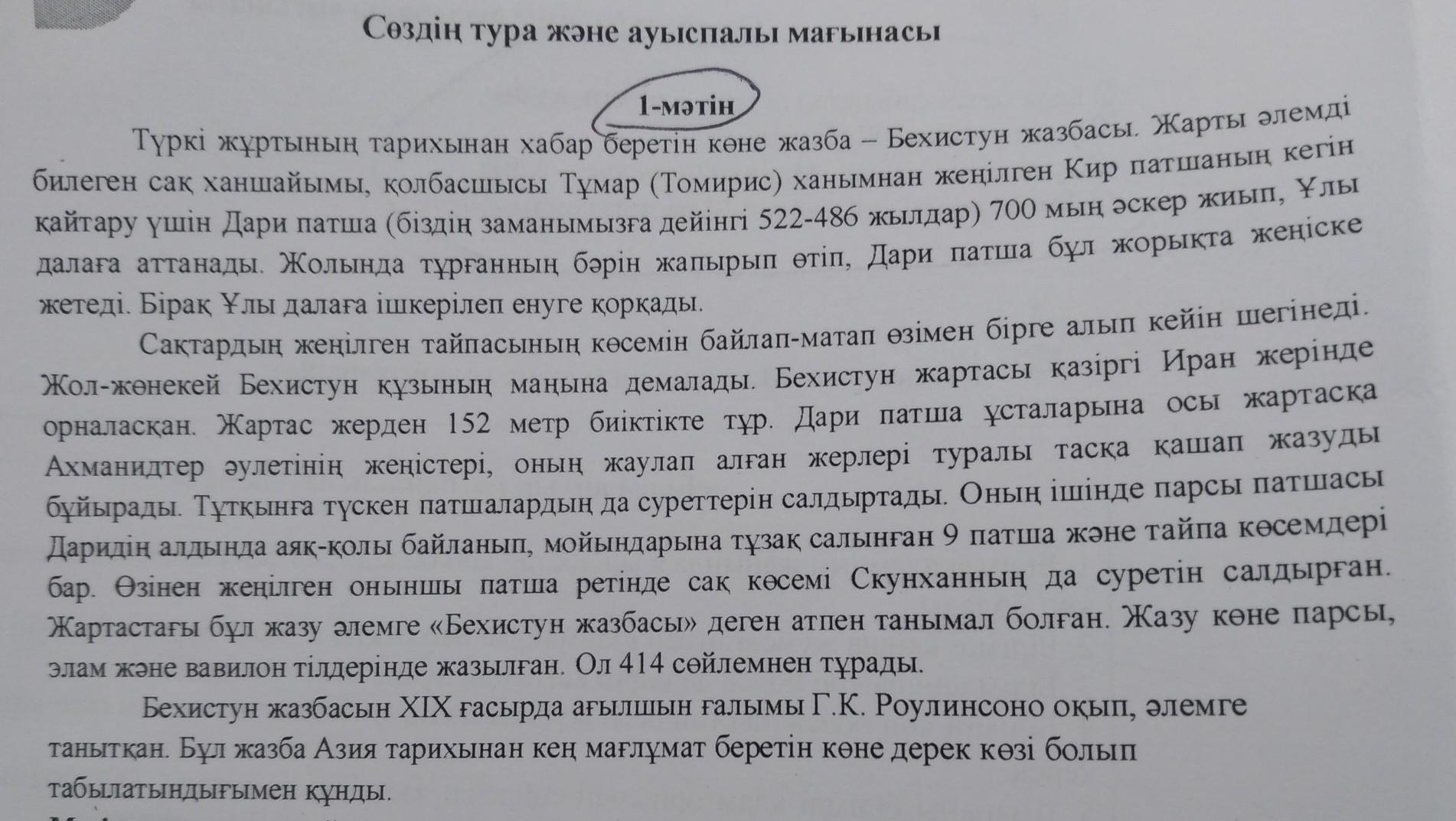 Мәтін мазмұнына сай тақырыпты көрсетіңіз. А) Тастағы көне жазу В) Кир патшаның жеңілісі С) Тұмар ханымның жеңiсi D) Дари патшаның кек алуы